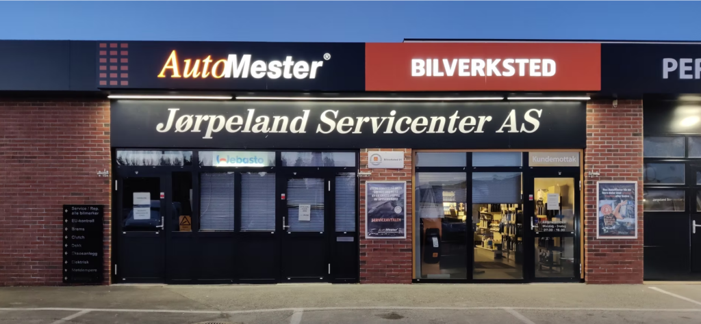 Jørpeland Servicenter AS er et autorisert bilverksted i Automesterkjeden. Du finner oss ved Esso stasjonen på Jørpeland. Vi utfører EU-kontroll og reparasjon av alle bilmerker , varebil og bobil opp til 7,5T.